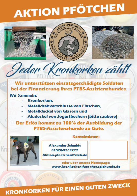Da wir einen direkten Bezug zur Bundeswehr haben, sind wir auf die Aktion aufmerksam geworden. Inzwischen haben wir in unserer Gemeinde die ersten Sammelboxen verteilt und sammeln eifrig mit.